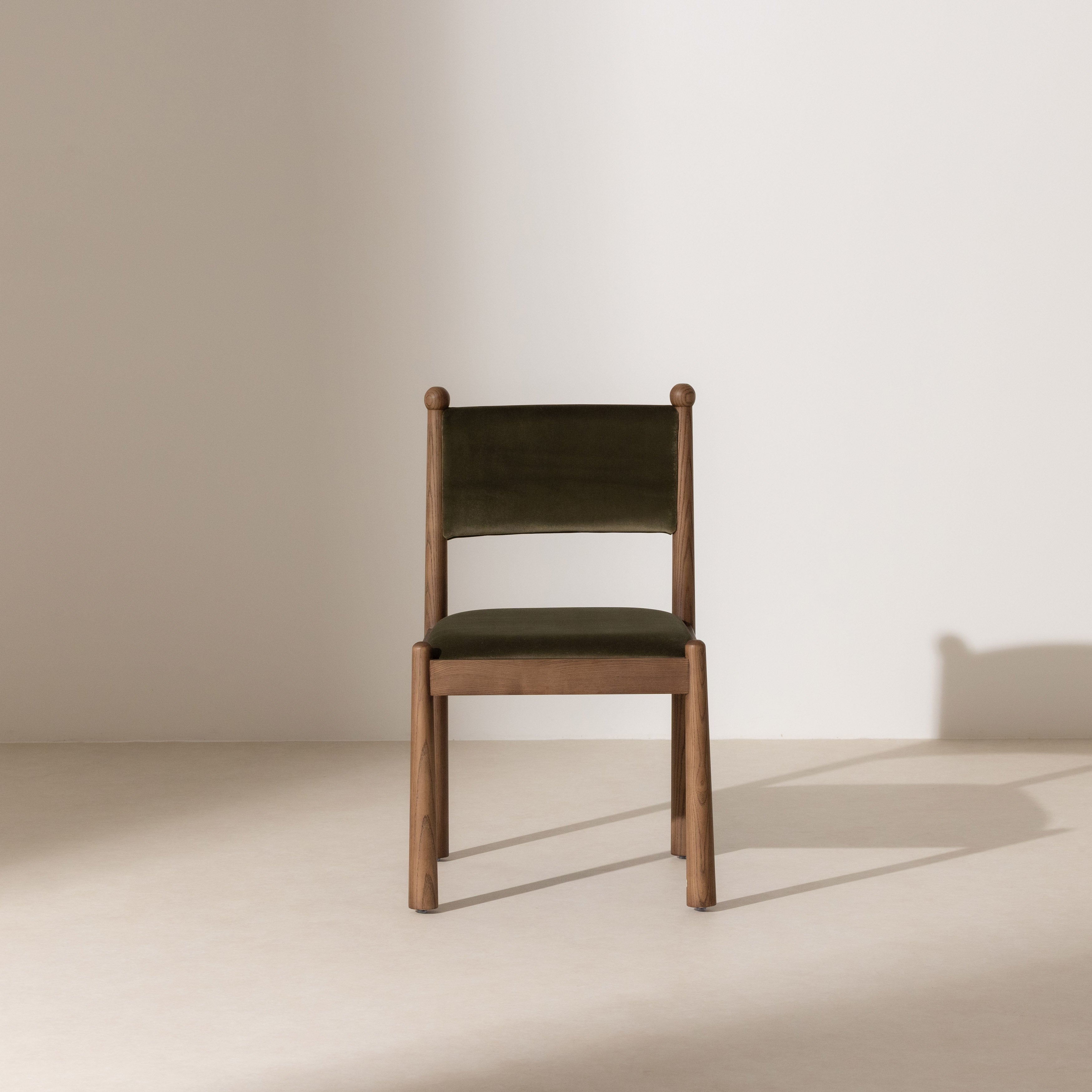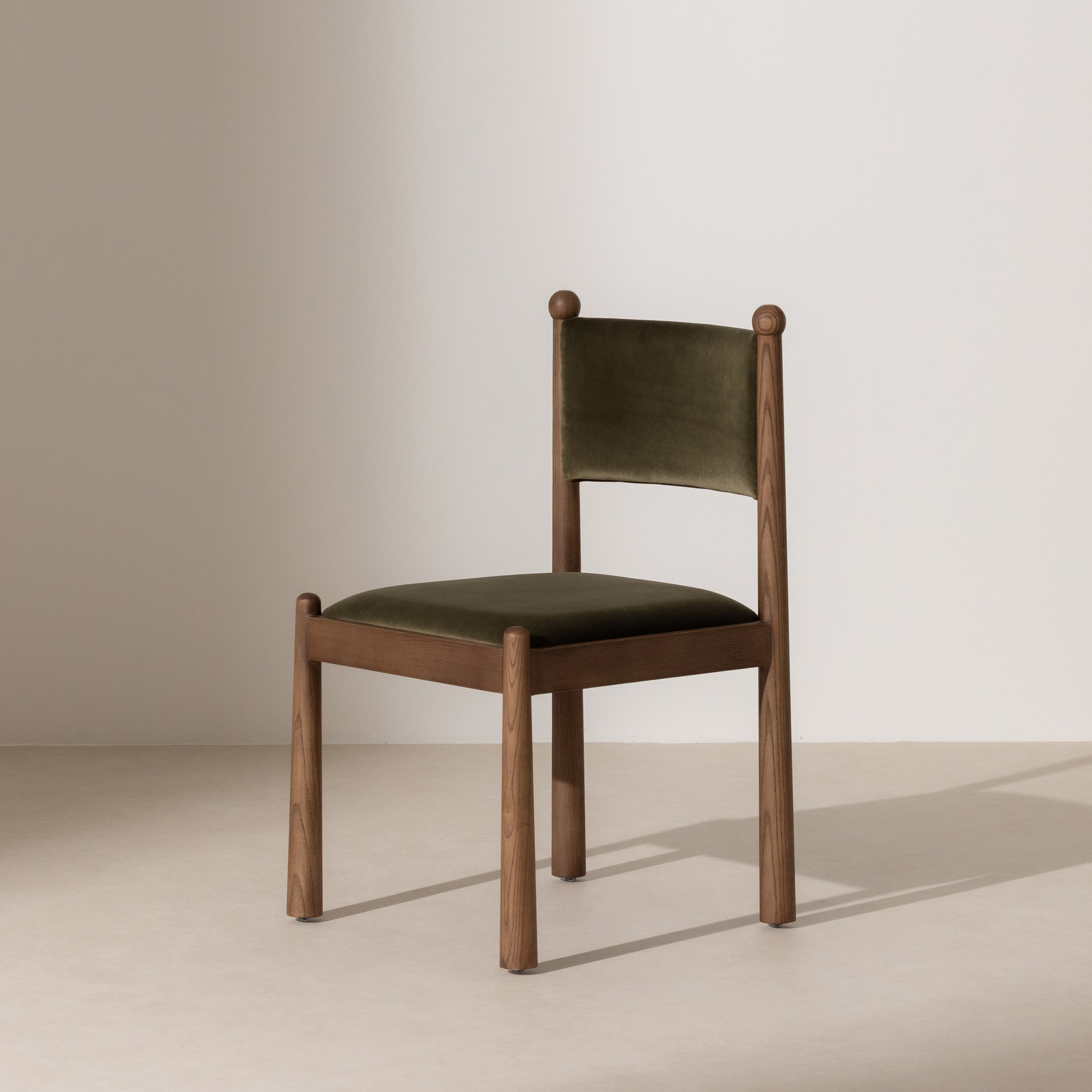 The luxurious khaki velvet upholstery envelops you in softness whilst maintaining an air of refined restraint—a perfect balance between indulgence and understated sophistication. Whether anchoring a formal dining setting or adding character to a casual kitchen, the Bobble chair transforms everyday meals into occasions worthy of its graceful presence.