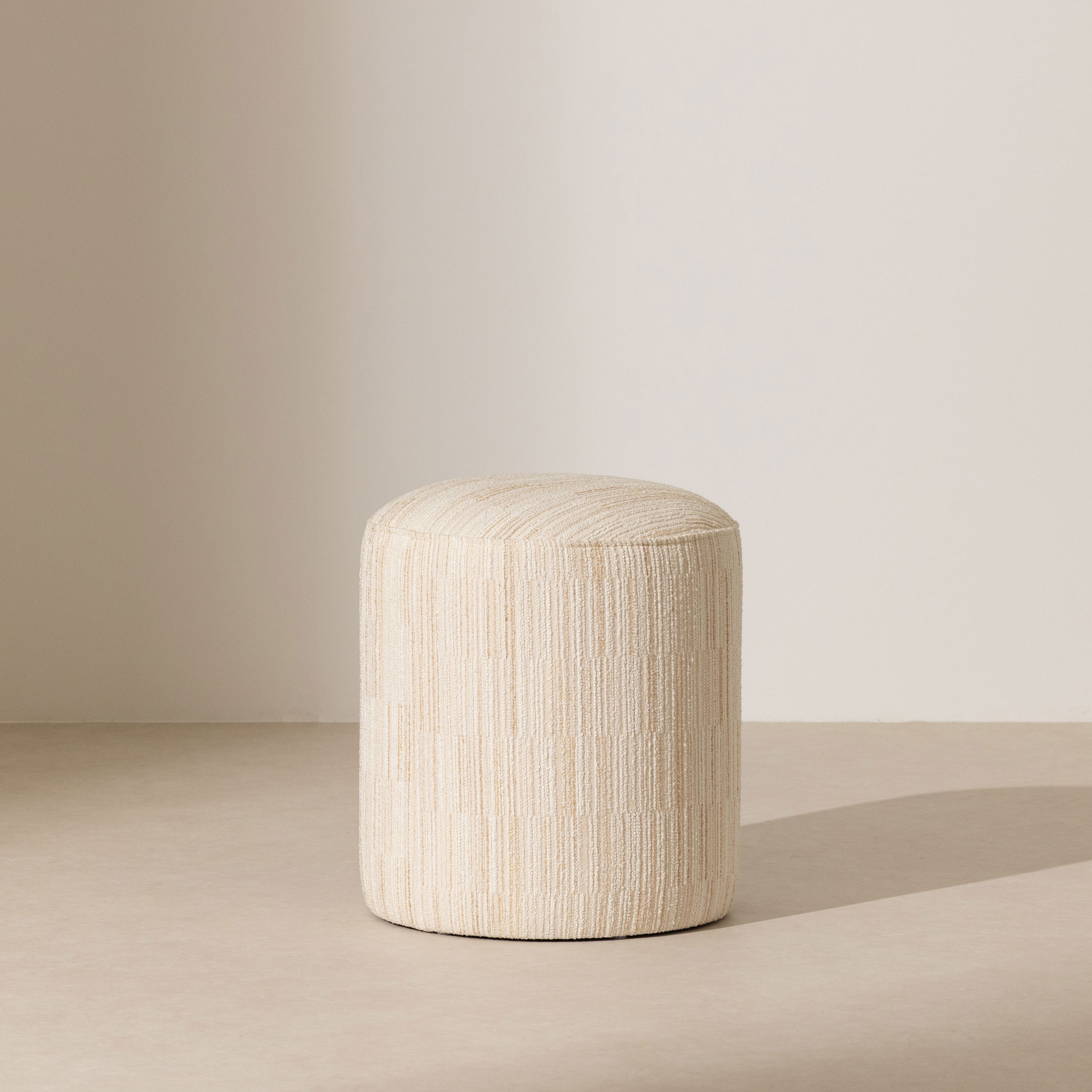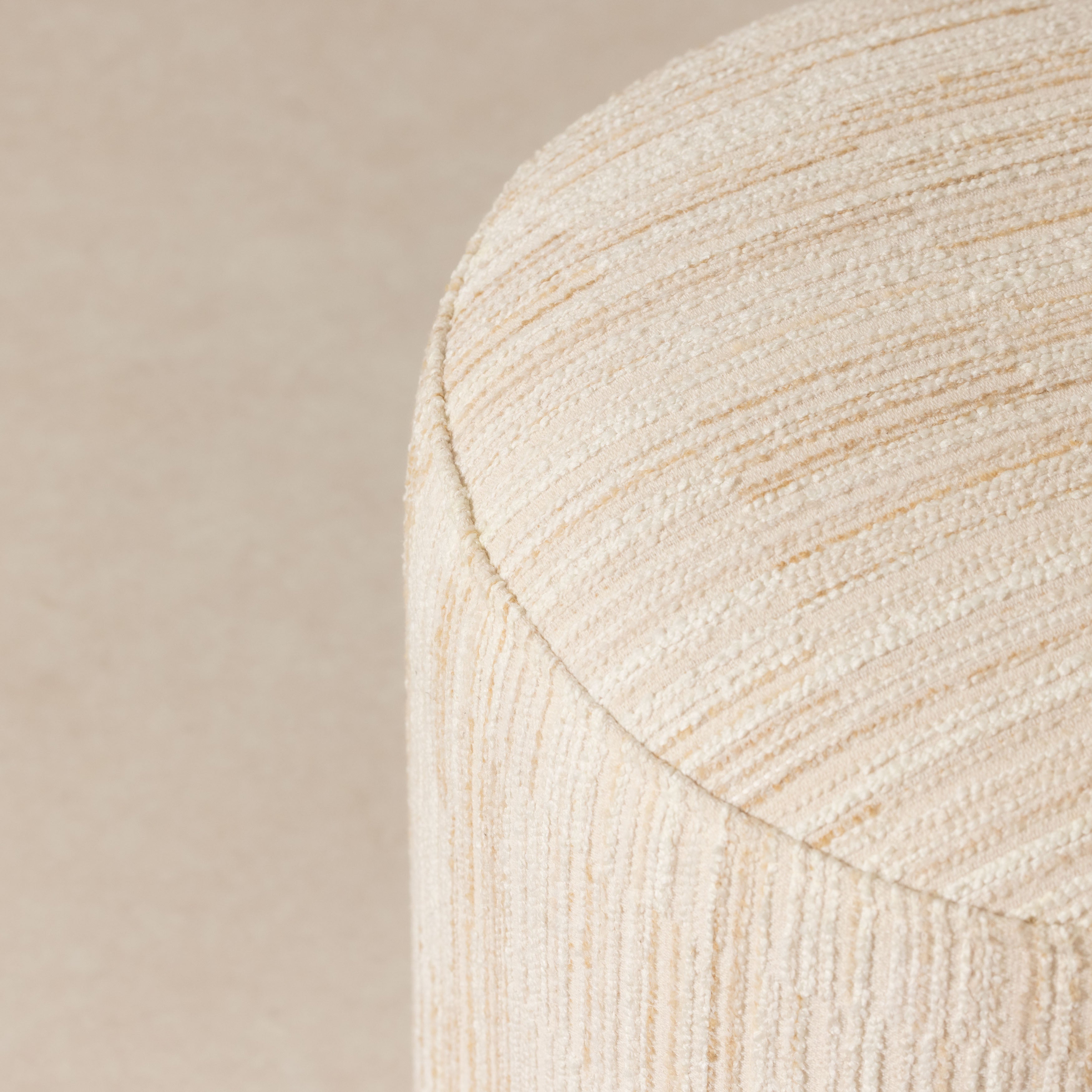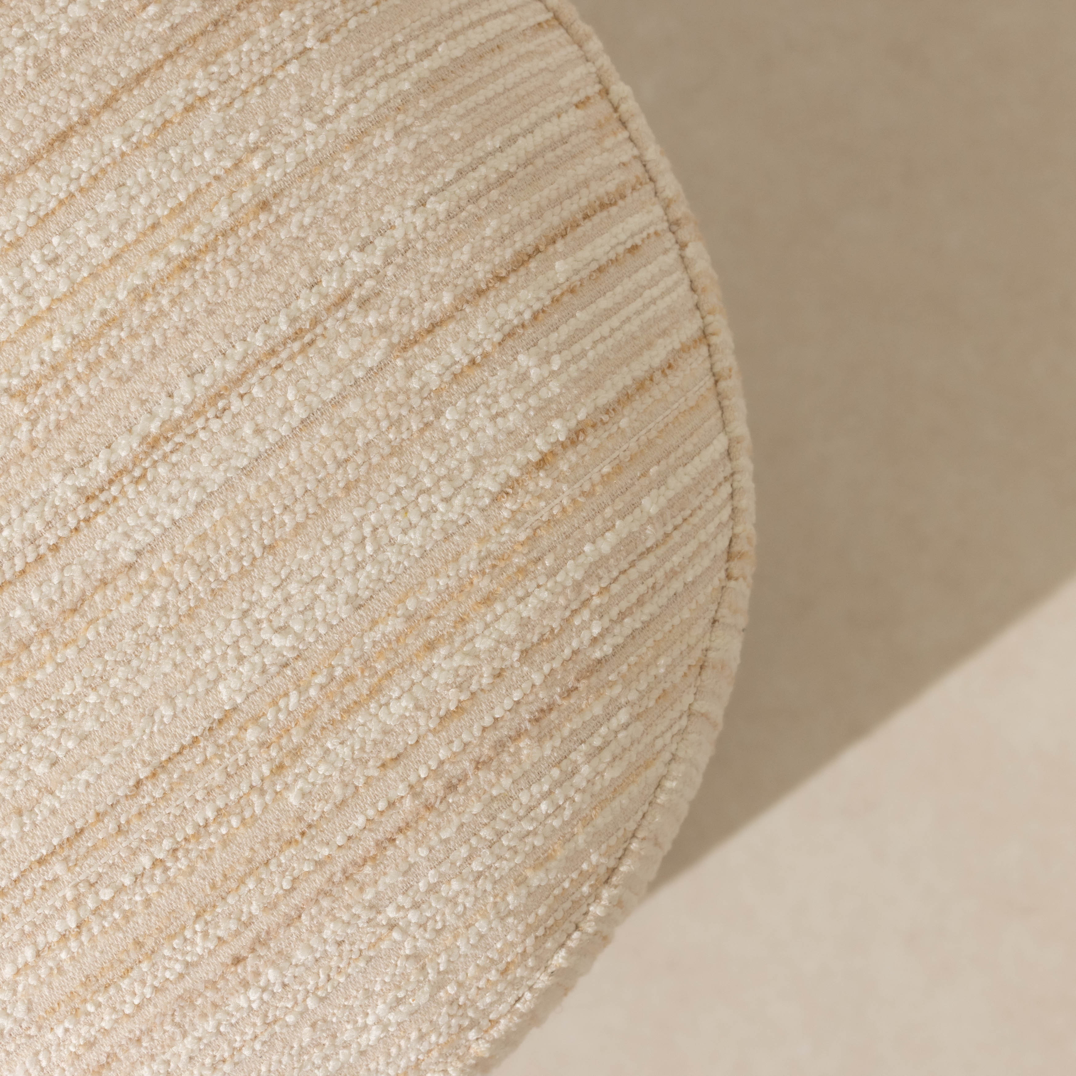 Introducing the Pill Pouffe, handmade in our workshop in England. This oversized pouffe is the perfect layering piece, designed to add an unexpected touch of luxury to your space. Upholstered in a neutral textured boucle, with subtle striped detail.