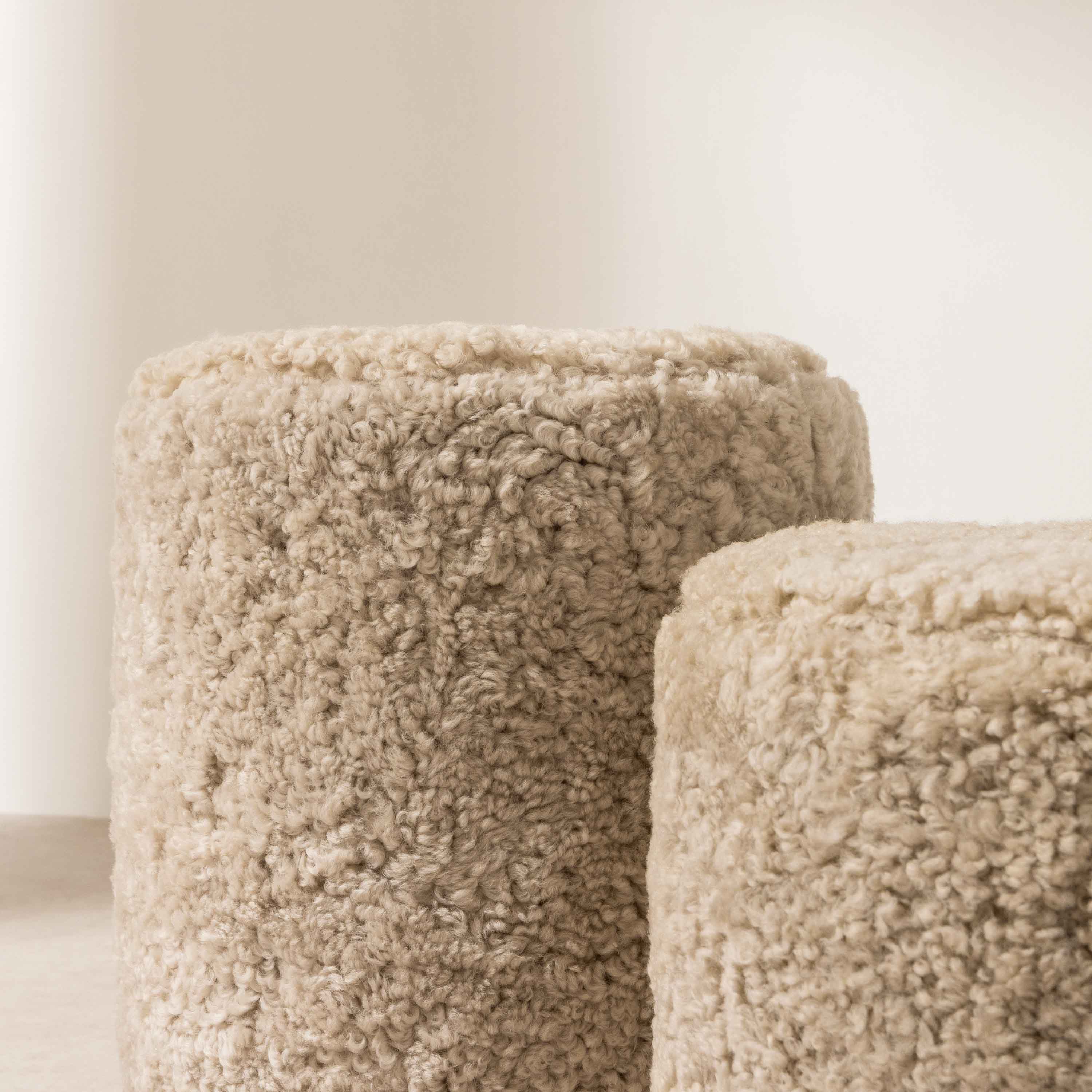 The enduring appeal of sheepskin, admired across numerous interior design trends, brings both tactile sophistication and lasting durability. Each pouffe is naturally unique, with slight variations in texture and pile, making it a timeless investment that seamlessly complements contemporary living spaces.