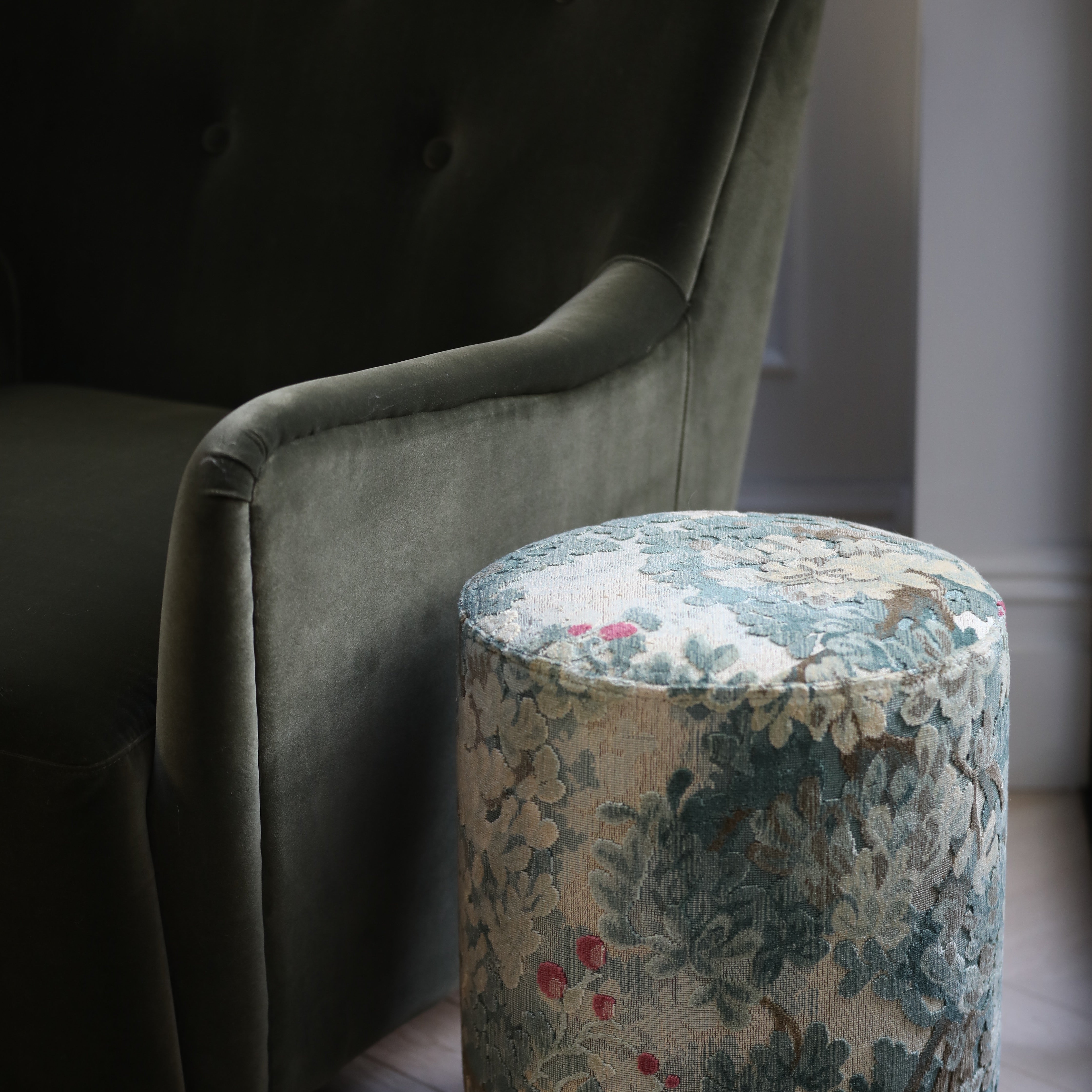 Bring a touch of charm to your space with this elegant and adaptable tapestry pouffe by No.17 House. The fabric is a revival of a classic 17th-century tapestry, celebrated for its lush botanical motifs. Rendered in a delicate tapestry that drapes beautifully, it showcases soft hues perfect for autumn or spring.